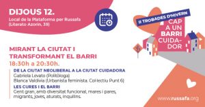 Les II Trobades d’Hivern Cap a un barri cuidador comencen dijous, 12 de desembre, amb la sessió Mirant la ciutat i transformant el barri, en la qual es plantejaran els fonaments de debat dels pròxims dies. En aquesta sessió hem programat dos continguts: De la ciutat neoliberal a la ciutat cuidadora. Les cures i el … Sigue leyendo Mirant la ciutat i transformant el barri